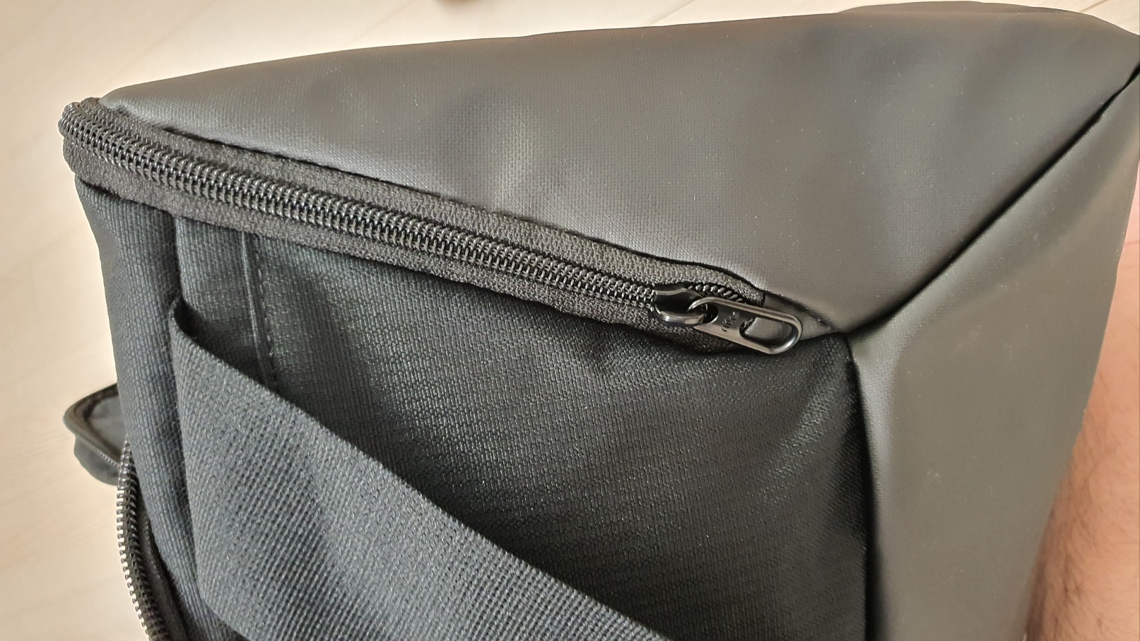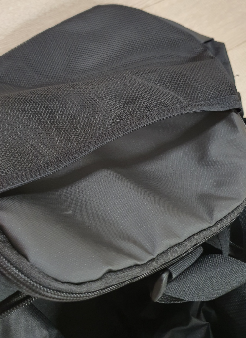 수납공간은 메인 공간, 전면과 양면 수납, 왼쪽면 메쉬 수납, 내부 공간 지퍼 수납 총 6곳이 있습니다.