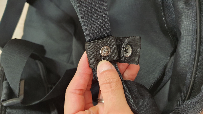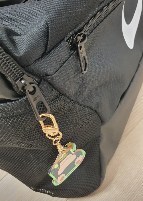 끈 정리를 위해 똑딱이가 달려있습니다. 지퍼에 잠만보 키링을 달고 나니 한껏 멋이 살아납니다.