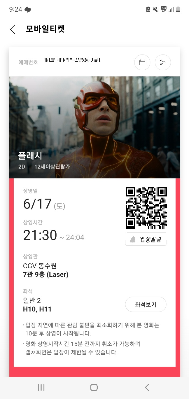 동수원 CGV 영화관 이용 후기(+영화 더 플래시 후기)