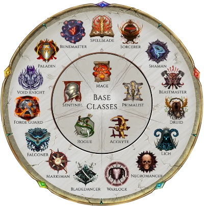 라스트에폭은 다섯가지의 기본직업과 각 직업별로 세가지의 전문화를 가지고 있습니다. 다섯가지 기본직업은 각각 메이지, 센티널, 로그, 어콜라이트, 프리멀리스트 입니다. 얼리 억세스에서는 네크로맨서와 매사냥꾼 직업을 선택할 수 없었지만 오늘 정식 출시일부터는 모두 선택이 가능합니다.