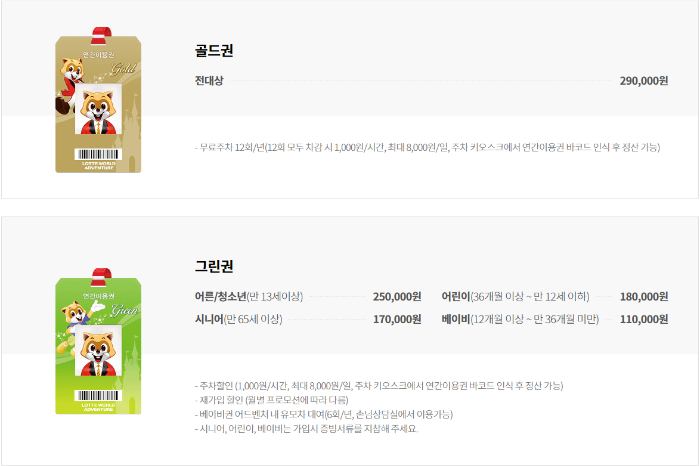 특이사항 : 롯데월드 어드벤처 부산에서 사용 불가, 등급별 할인율 차이