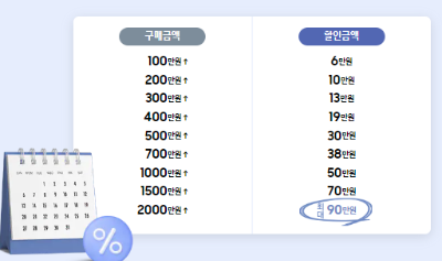 - 결제일 할인 : 아래 이미지와 같이 구매금액 별 할인금액이 제공됩니다.