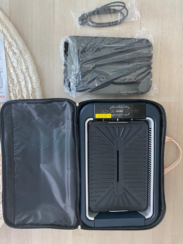 구성품은 아래 사진처럼 본체, 여분의 불판, 콘센트로 구성되어 있습니다.