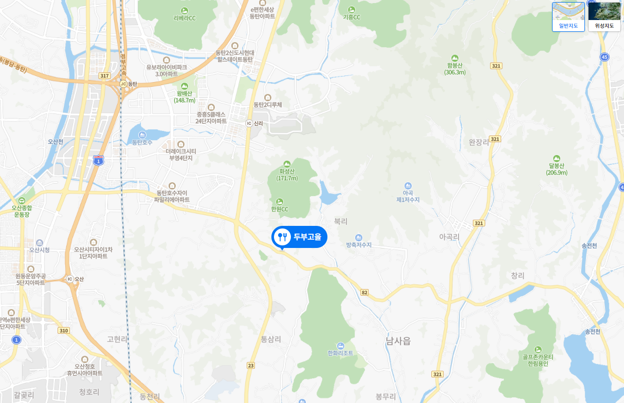 용인 두부고을 주소는 경기 용인시 처인구 남사면 경기동로 15 입니다. 처인구이긴 하지만 수원이나 오산쪽에서도 가까운 곳에 위치해 있습니다. 큰 간판이 도로변에 있어서 알아보기가 쉬웠습니다.