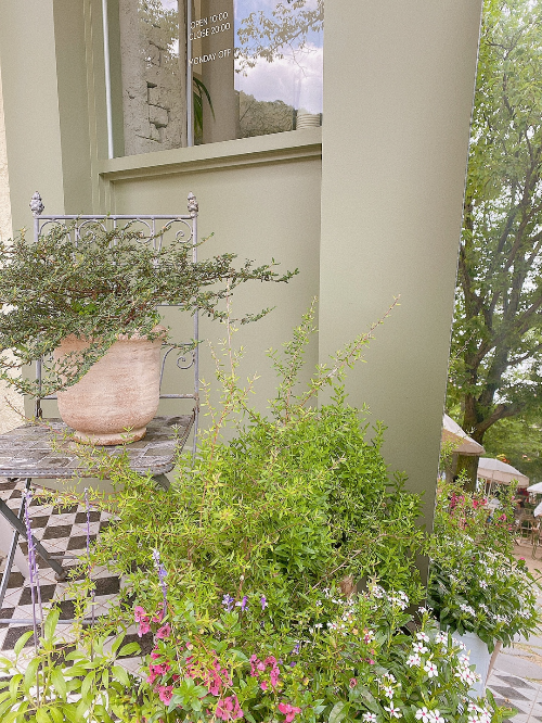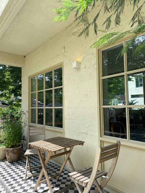 외부공간에는 좌석이 빼곡하게 있는 편이긴 했지만, 그 모습이 시장처럼 어지러운 것이 아니라 외국 휴양지 정돈된 느낌이었습니다. 건물에 폴딩도어를 배치하고 열어두어서 외부에서도 건물 안이 잘 보였고 내부와 외부가 하나로 연결된 공간처럼 느껴졌습니다. 건물 옆에서는 포토존처럼 꾸며둔 곳도 있어 사진을 남기기에 좋았습니다.