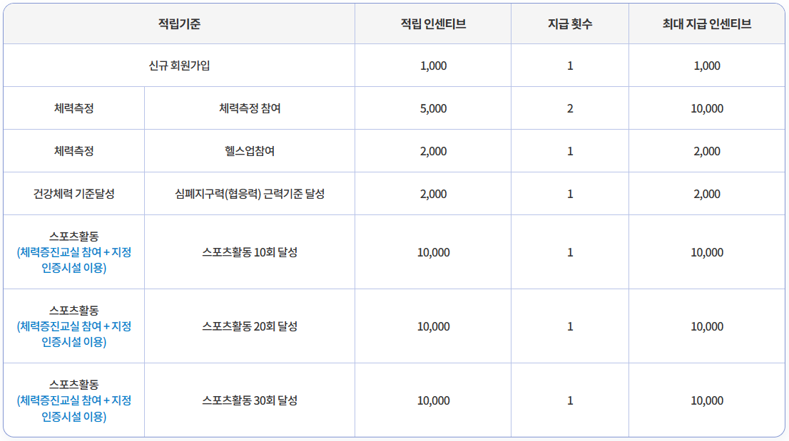 - 스포츠활동 인센티브 적립 및 사용