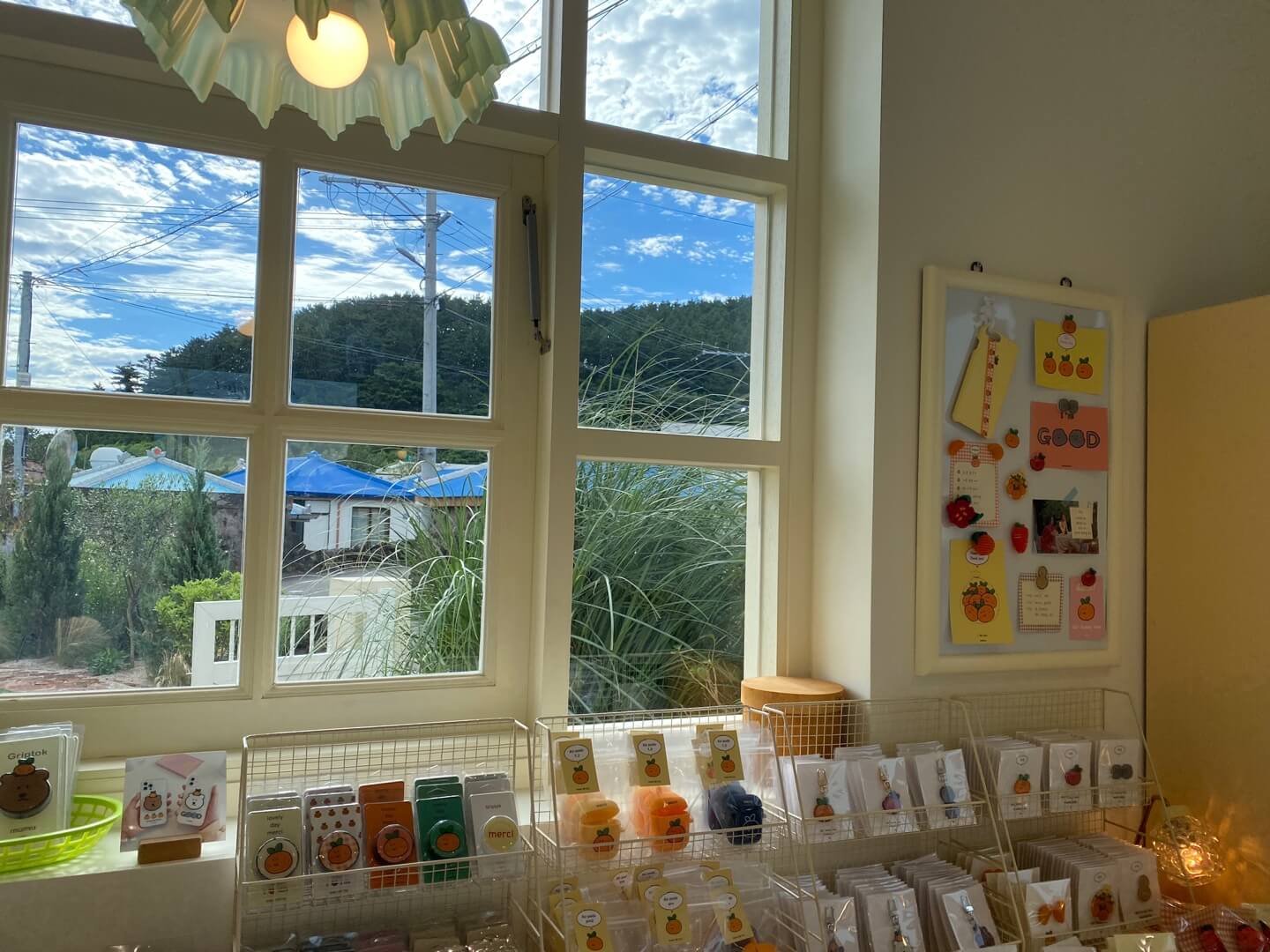 제주에 있는 소품샵을 가시게 되면 귤과 관련된 캐릭터를 많이 보실 수 있습니다. 하지만 개인적으로는 무무제주 입간판에 그려진 귤이 제일 귀여웠습니다. 소품샵인 만큼 다양한 상품이 있습니다. 노트나 펜부터 키링, 작은 인형 그리고 지비츠까지 있습니다.