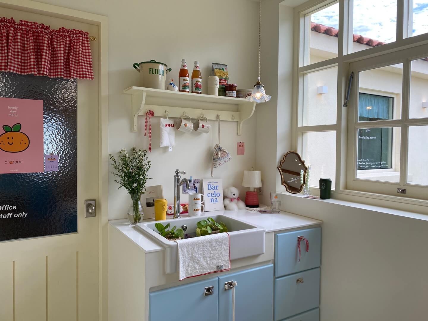 개별적인 소품도 귀여웠지만 와이프는 특히 아기자기하게 꾸며진 세면대 공간을 제일 좋아했습니다.