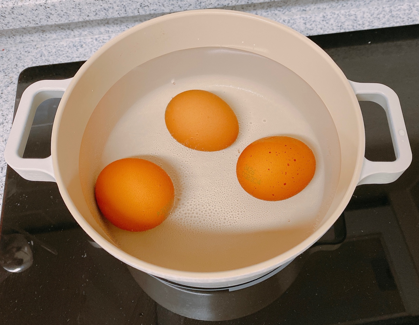 2. 삶은 계란을 넣을 경우 끓는 물에 계란을 20분간 삶아줍니다. 20분이 지나고 나서는 찬물에 넣어 식혀주면 껍질을 벗기는 것이 수월합니다.