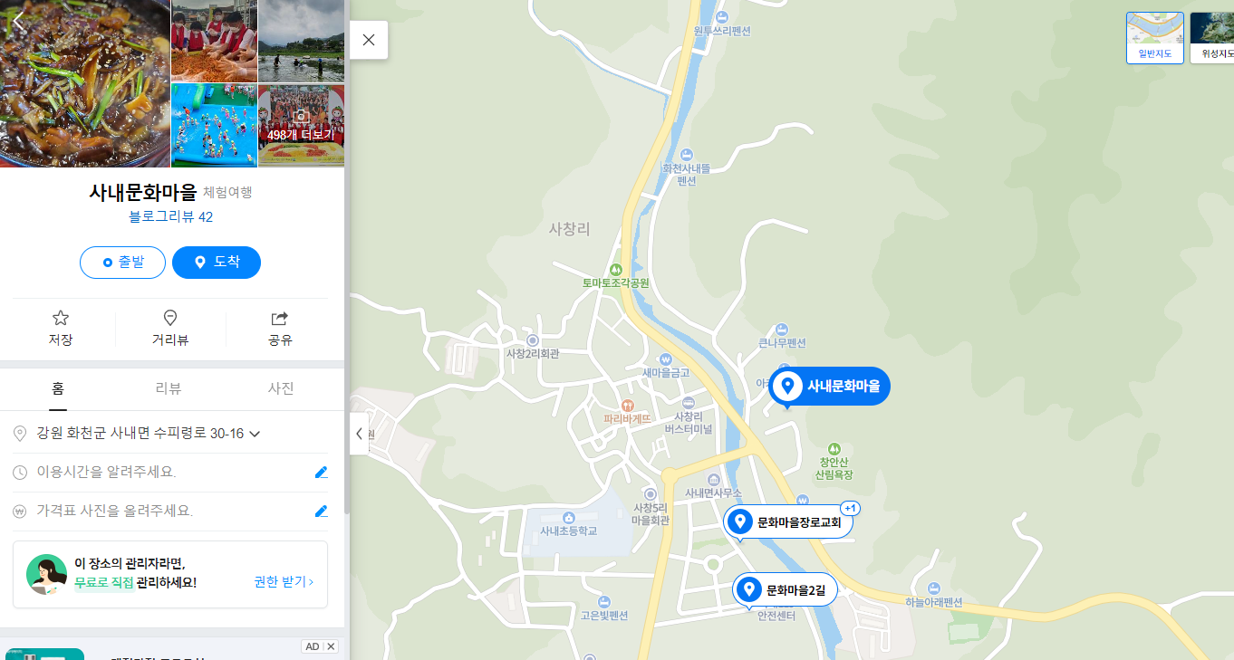 - 장소 : 강원특별자치도 화천군 사내면 문화마을 도시계획도로