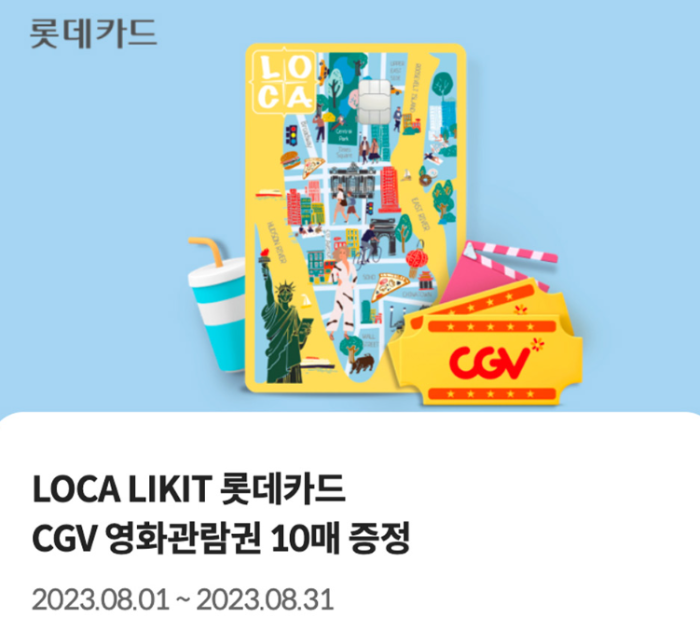 3. 혜택 : CGV영화 관람권 10매 증정(23.09.30 까지 롯데카드에서 제공)